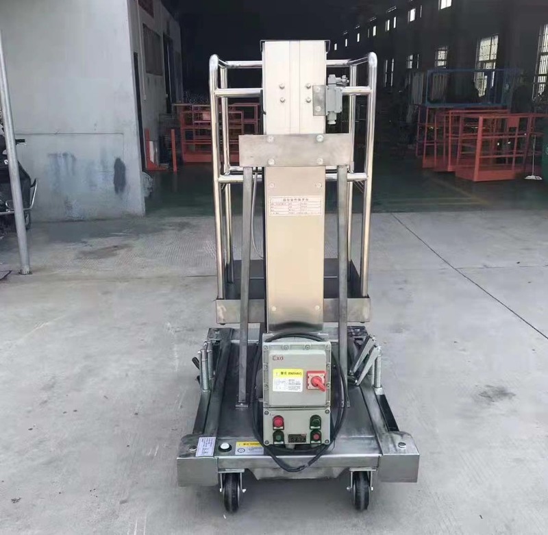 鋁合金升降機升降動力分為220V、 380V,或電瓶動力源,特殊環(huán)境也可采用防爆泵站及防爆電器。 升高4—16米, 載重100-200公斤。