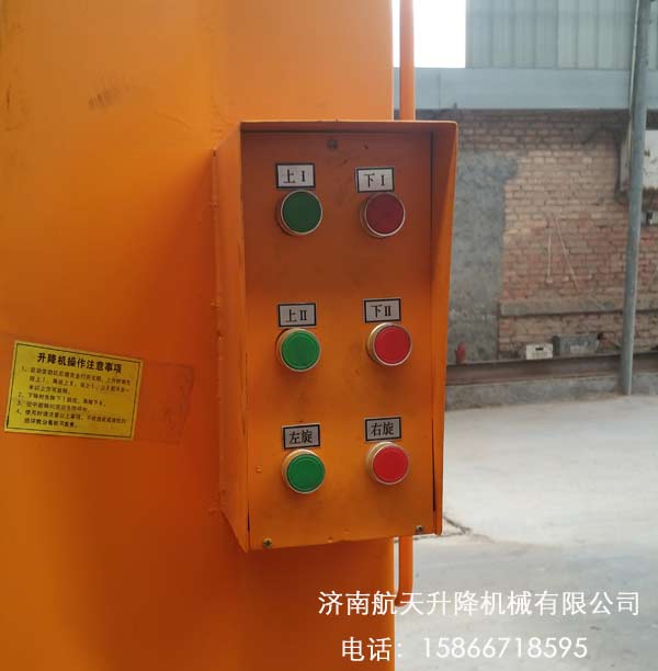 02 用全液壓升降機(jī)構(gòu),在平臺(tái)斗內(nèi)和升降機(jī)本體上均可操作 |
