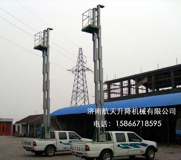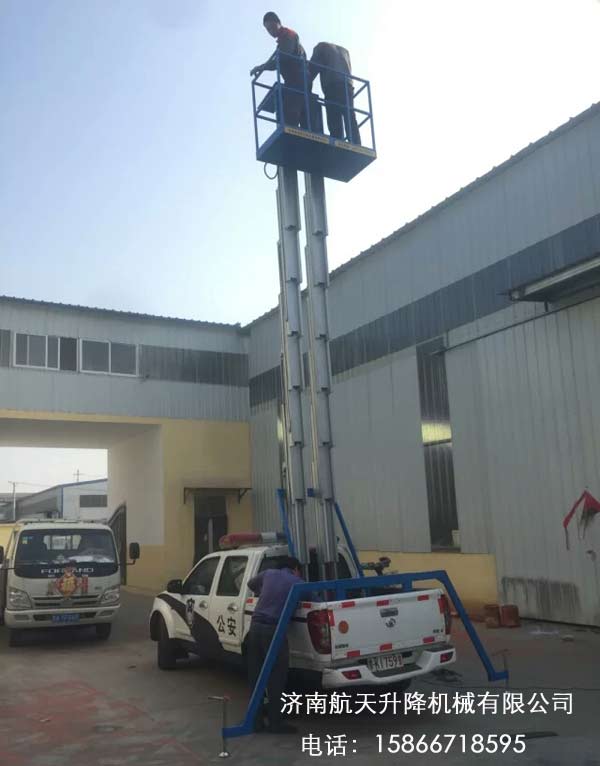 車載式升降機(jī)采用汽車、三輪車或電瓶車底盤做平臺(tái)底架,利用本車發(fā)動(dòng)機(jī)或直流電做動(dòng)力,既可行駛又可驅(qū)動(dòng)平臺(tái)升降。車載剪叉式升降機(jī)具有機(jī)動(dòng)性強(qiáng)、工作范圍較大等特點(diǎn)。特別適用于遠(yuǎn)距離、大范圍、不同工作場(chǎng)地的高空作業(yè),如公路交通、路燈照明、工程搶險(xiǎn)等。平臺(tái)動(dòng)力可使用汽車動(dòng)力或直流蓄電池,安全可靠。適用的車型有五十鈴、BJ1041、江淮(JAC)、依維柯、福田、東風(fēng)小霸王、時(shí)代小卡等輕型貨車及皮卡。