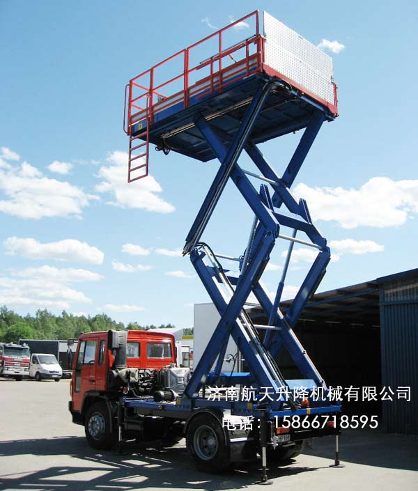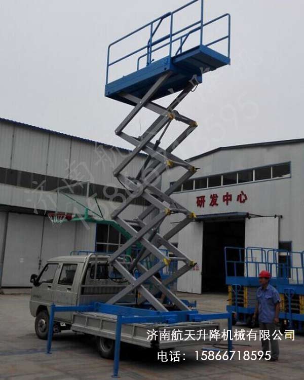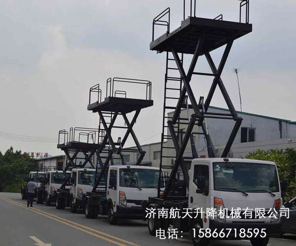 車載剪叉式升降機采用汽車、三輪車或電瓶車底盤做平臺底架,利用本車發(fā)動機或直流電做動力,既可行駛又可驅動平臺升降。車載剪叉式升降機具有機動性強、工作范圍較大等特點。特別適用于遠距離、大范圍、不同工作場地的高空作業(yè),如公路交通、路燈照明、工程搶險等。平臺動力可使用汽車動力或直流蓄電池,安全可靠。適用的車型有五十鈴、BJ1041、江淮(JAC)、依維柯、福田、東風小霸王、時代小卡等輕型貨車及皮卡。