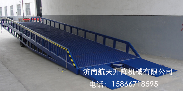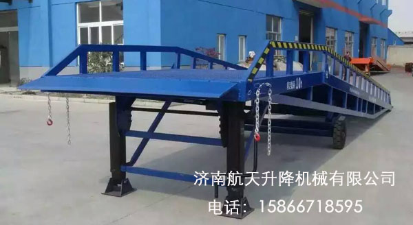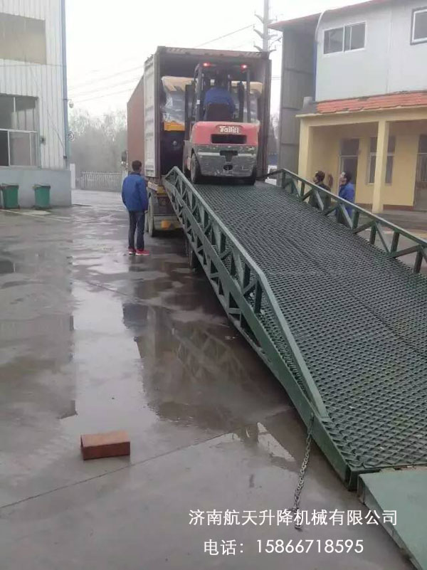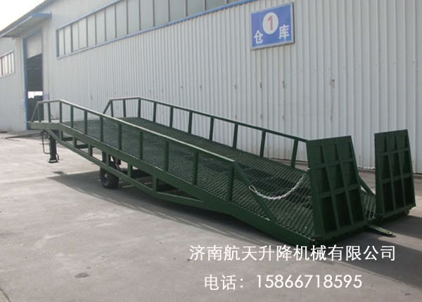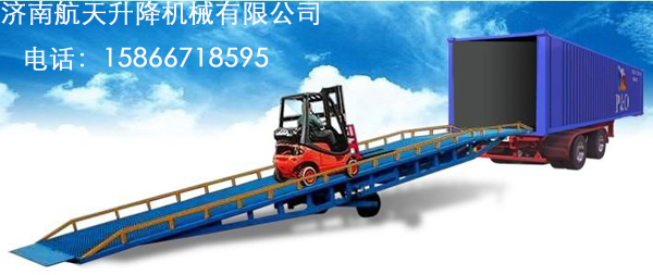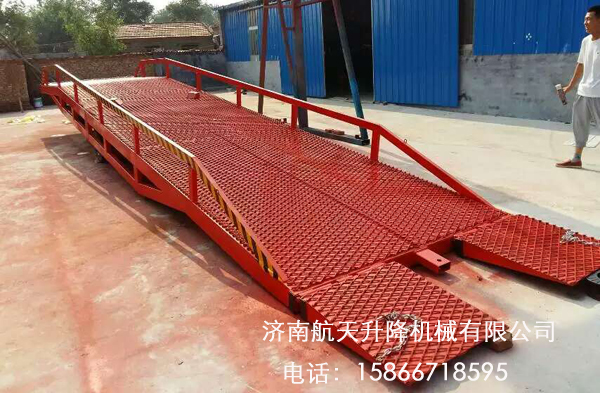 移動式登車橋與叉車配合使用的貨物裝卸輔助設備,可根據(jù)汽車車廂的高低調節(jié)高度,叉車可以直接通過本設備駛入車廂內部進行貨物的批量裝卸,僅需單人作業(yè),即可實現(xiàn)貨物的快速裝卸。它使企業(yè)減少大量勞力,提高工作效率,獲取更大經(jīng)濟效益。