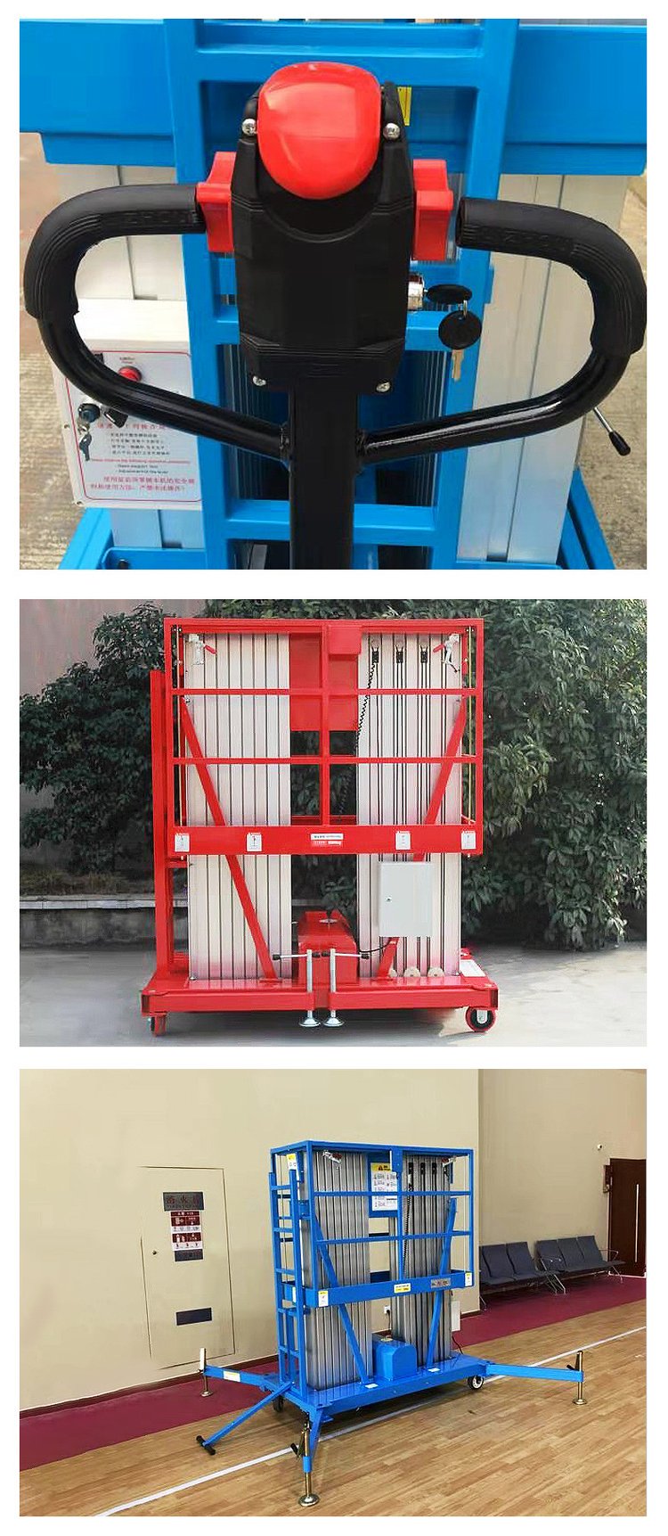 鋁合金升降機(jī)采用鋁合金材料,具有造型美觀、體積小、重量輕、運(yùn)轉(zhuǎn)靈活,推行方便。升降平穩(wěn)、安全可靠等優(yōu)點(diǎn)。它輕盈的外觀,能在小的空間內(nèi)發(fā)揮高的舉升能力。廣泛用于工廠、賓館、餐廳、車站、影劇院、展覽館等場所,是保養(yǎng)機(jī)具、油漆裝修、調(diào)換燈具、電器、清潔保養(yǎng)等用途的安全伴侶。